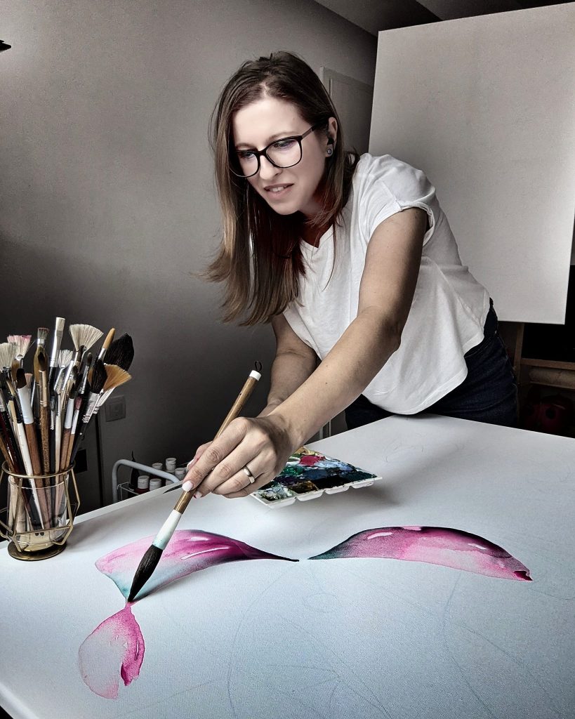 Alexandra descoperă dragostea pentru pensulă destul de devreme, dar e nevoie să ajungi în acel moment al vieții în care talentul pe care îl întrezărești de mic copil poate să explodeze cu maturitate și direcție precisă. Acesta este momentul în care decide că viața, așa cum o avea până atunci, nu poate continua fără acest detaliu care creează complexitatea ființei umane și ne face compleți. Și asumat, cu mult avânt și determinare, conturează un drum parcă așternut cu o pensulă plină de culoare pe pânză. Ca și cum patru personaje încep să scrie povestea unei vieți de artist: pensula, pânza, culoarea și, mai ales, mâna. Ce iese, doar ochiul poate surprinde, cuvintele sunt necuprinzătoare.